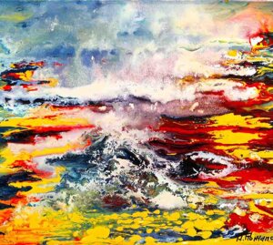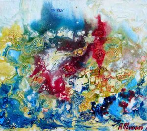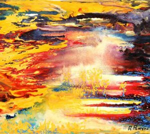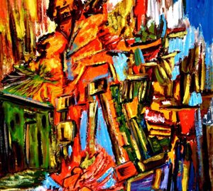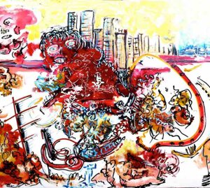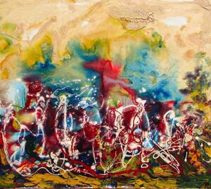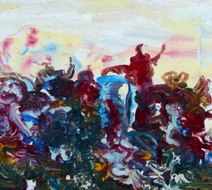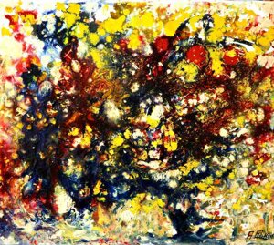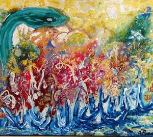 "Nel caos vitale e dinamico, nel Kronos stratificato dal colore, come da un quinta teatrale si schiude un varco cromatico dal quale lo sguardo della Gioconda è spinto fuori, attratto a noi da un palpitante richiamo" (Grazia Pastore)